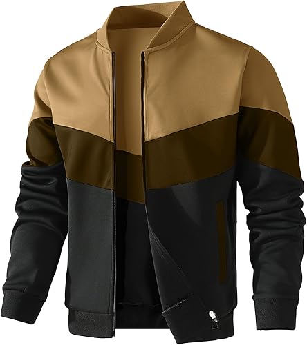 HYPESTFIT Mens Lightweight Jacket Casual Bomber Jacket Color Block Varsity Coat